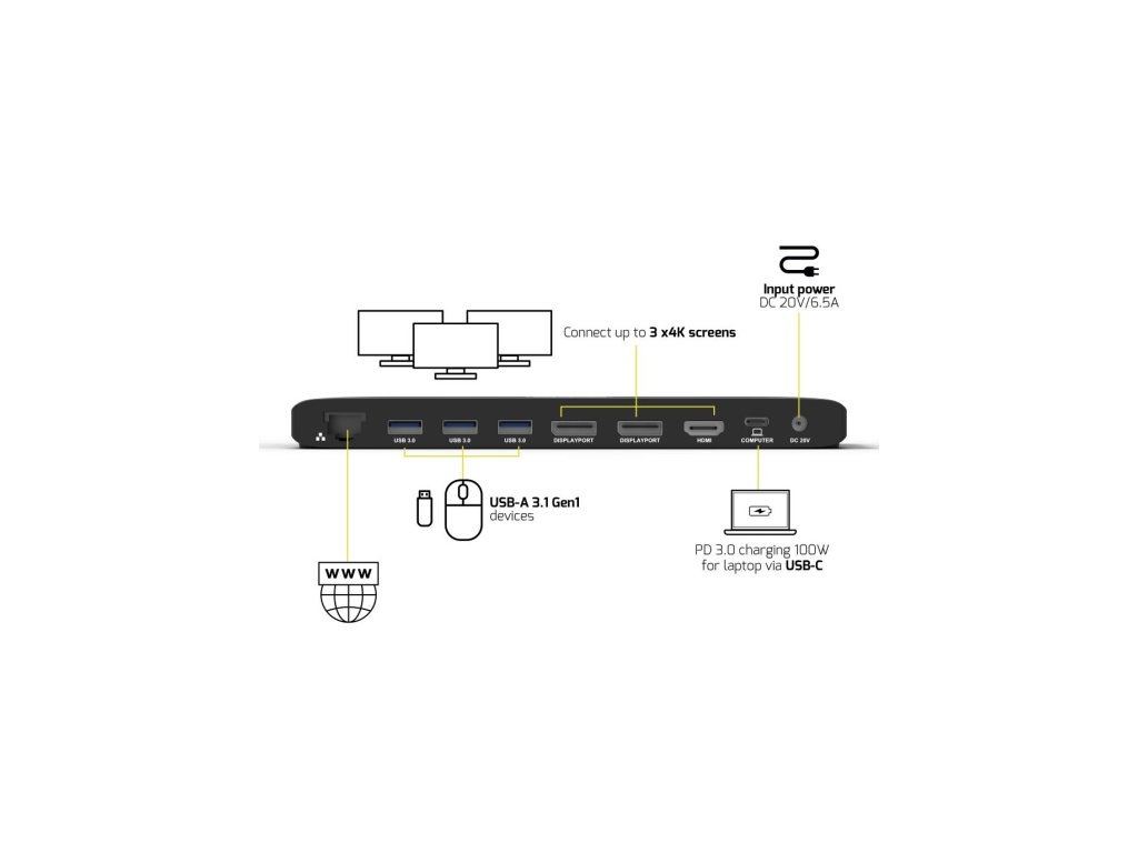 PORT CONNECT Dokovací stanice pro kanceláře, USB-C, 2x4K, černá
