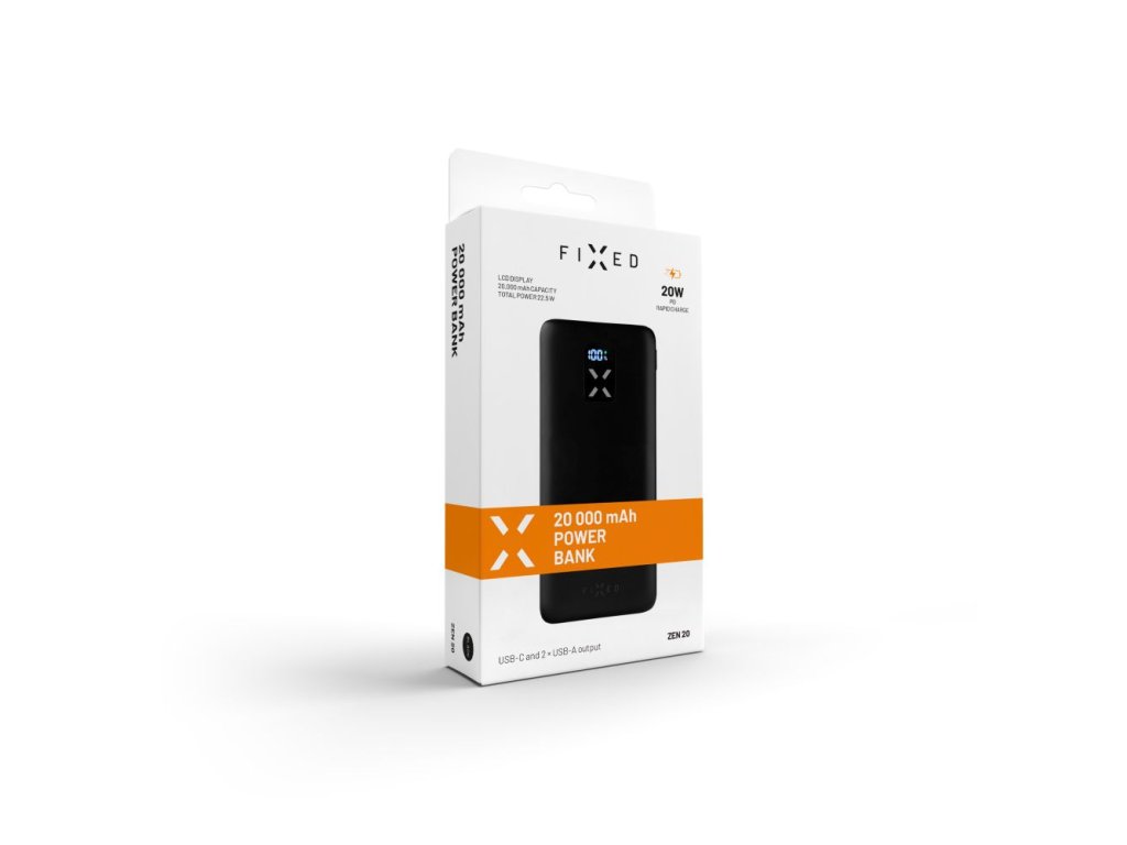Powerbanka FIXED Zen 20 s LCD displejem a výstupem PD 20W, 20 000 mAh, černá
