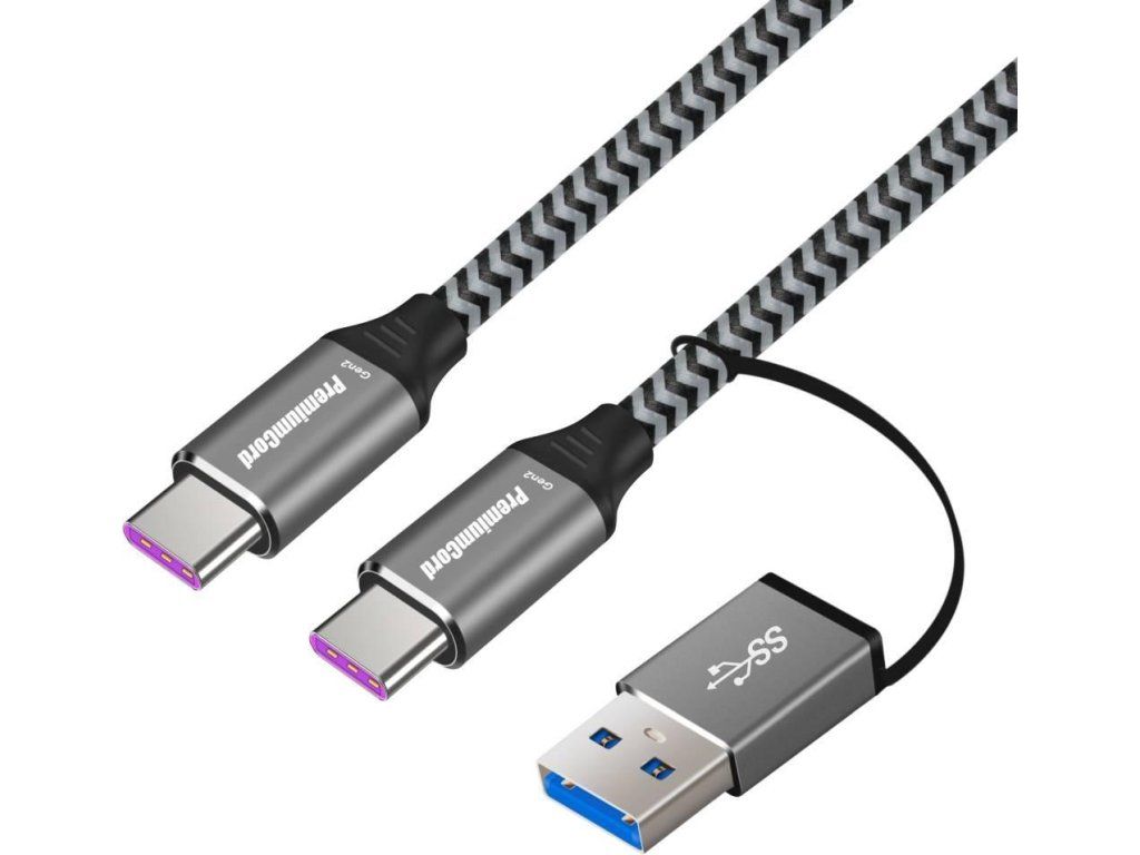 PremiumCord kabel USB-C (USB 3.2 GEN 2, 5A, 100W, 20Gbit/s) bavlněný oplet, 2m