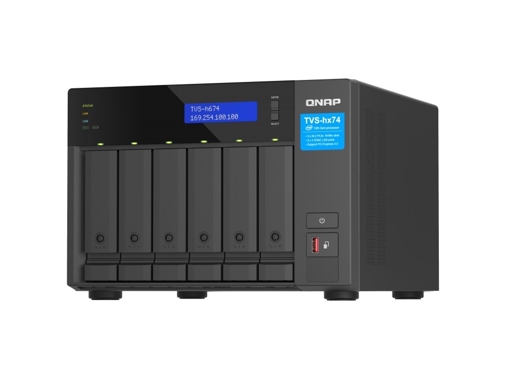 QNAP TVS-h674-i3-16G (4core 4,3GHz, ZFS, 16GB RAM, 6x SATA, 2x M.2 NVMe, 2x PCIe, 2x 2,5GbE, HDMI)