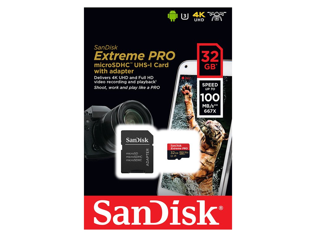 SanDisk Extreme PRO/micro SDHC/32GB/UHS-I U3 / Class 10/+ Adaptér