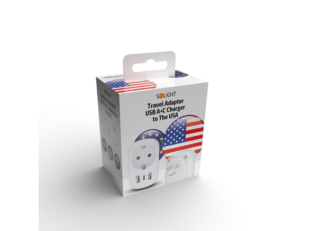 Solight cestovní adaptér USA USB A+C pro použití ve Spojených státech, typ B