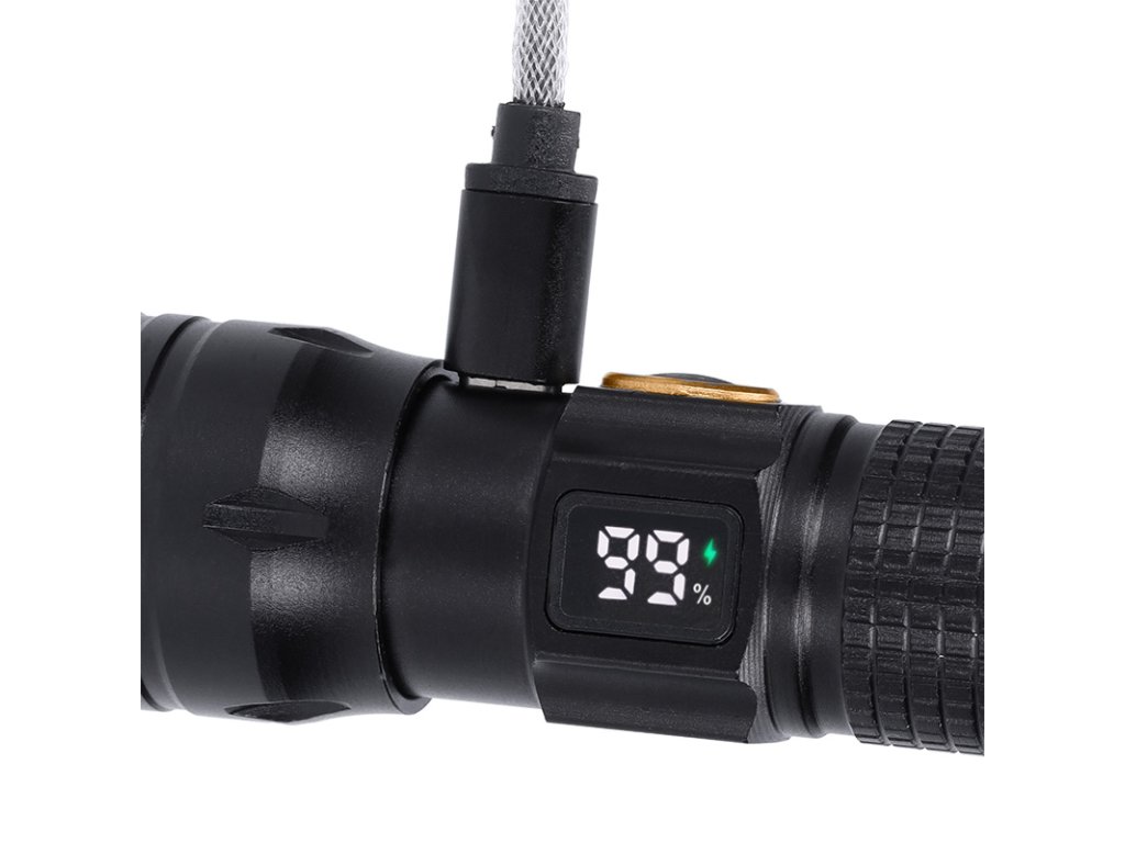 Solight LED nabíjecí svítilna s displayem, 200lm, zoom, Li-Ion