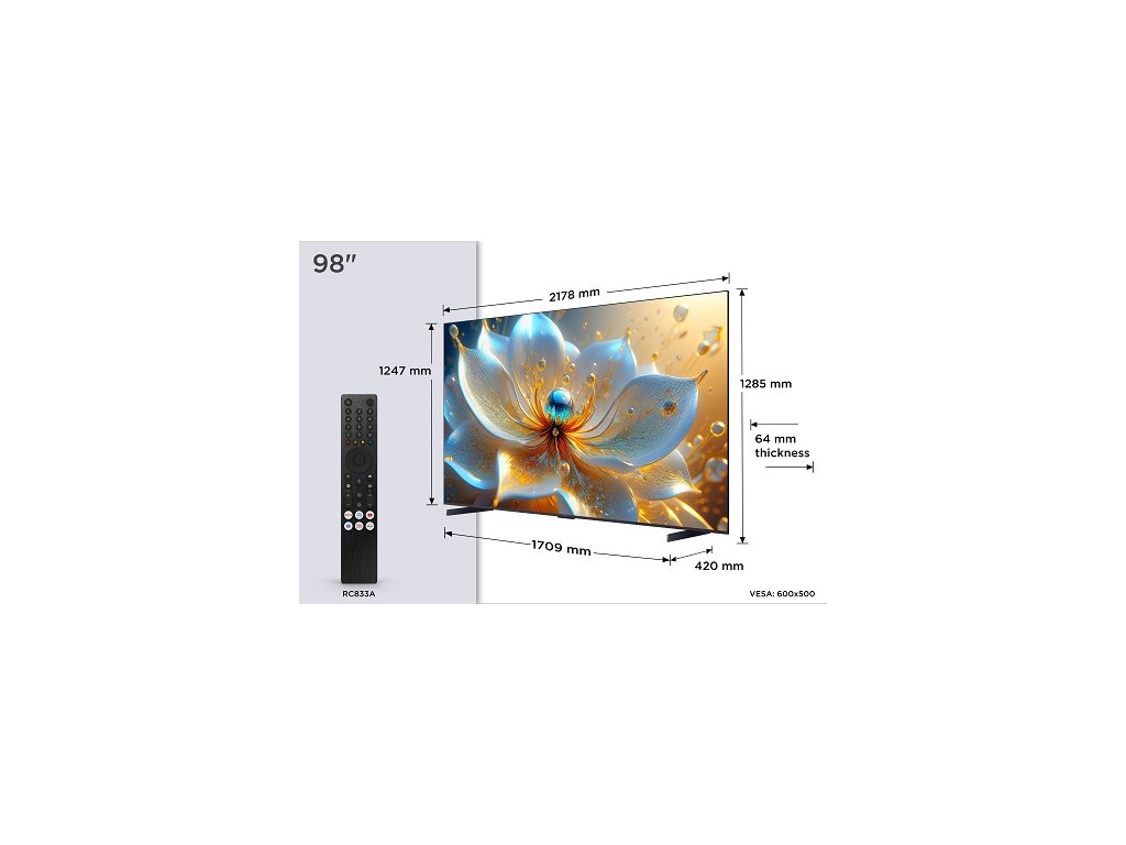 TCL 98T8C SMART TV 98" QLED/4K UHD/Direct LED/144Hz/4xHDMI/USB/LAN/GoogleTV