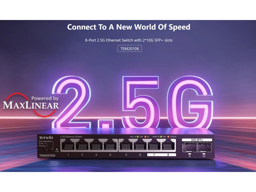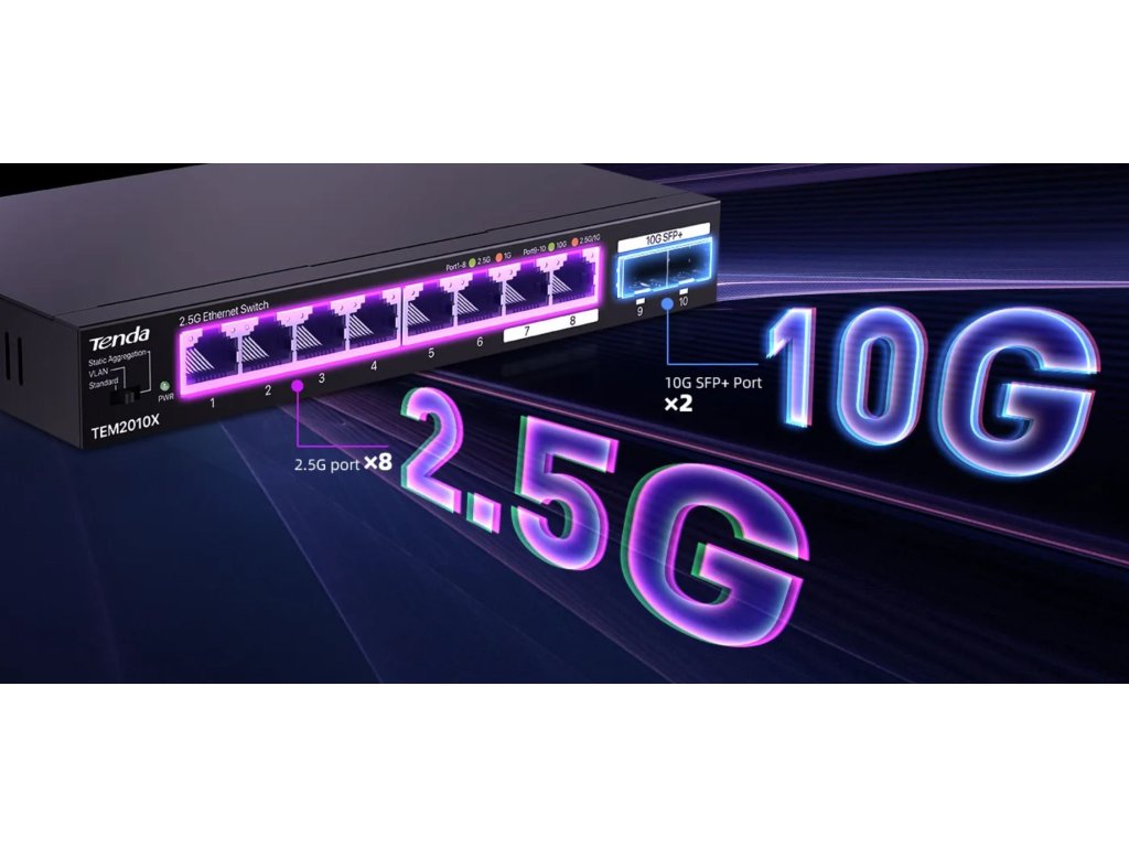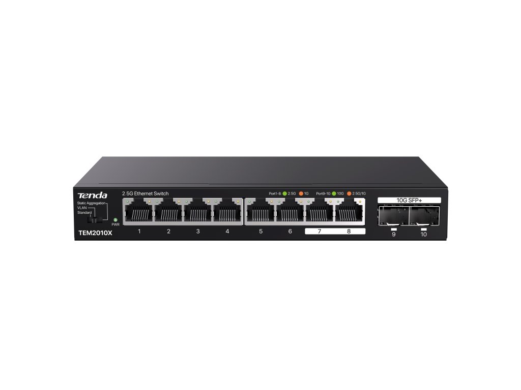 Tenda TEM2010X - Multi-gigabit switch, 8x 2.5G RJ45 + 2x 10G SFP+ port, MAC 16K, ochrana 6kV