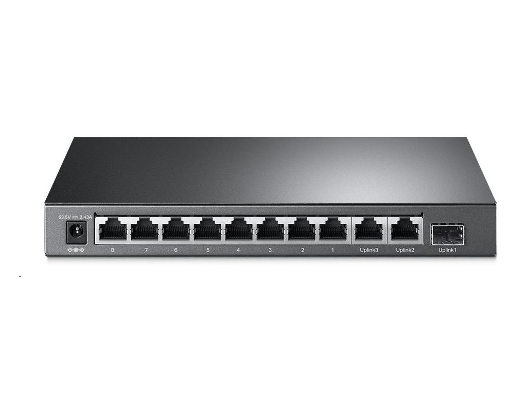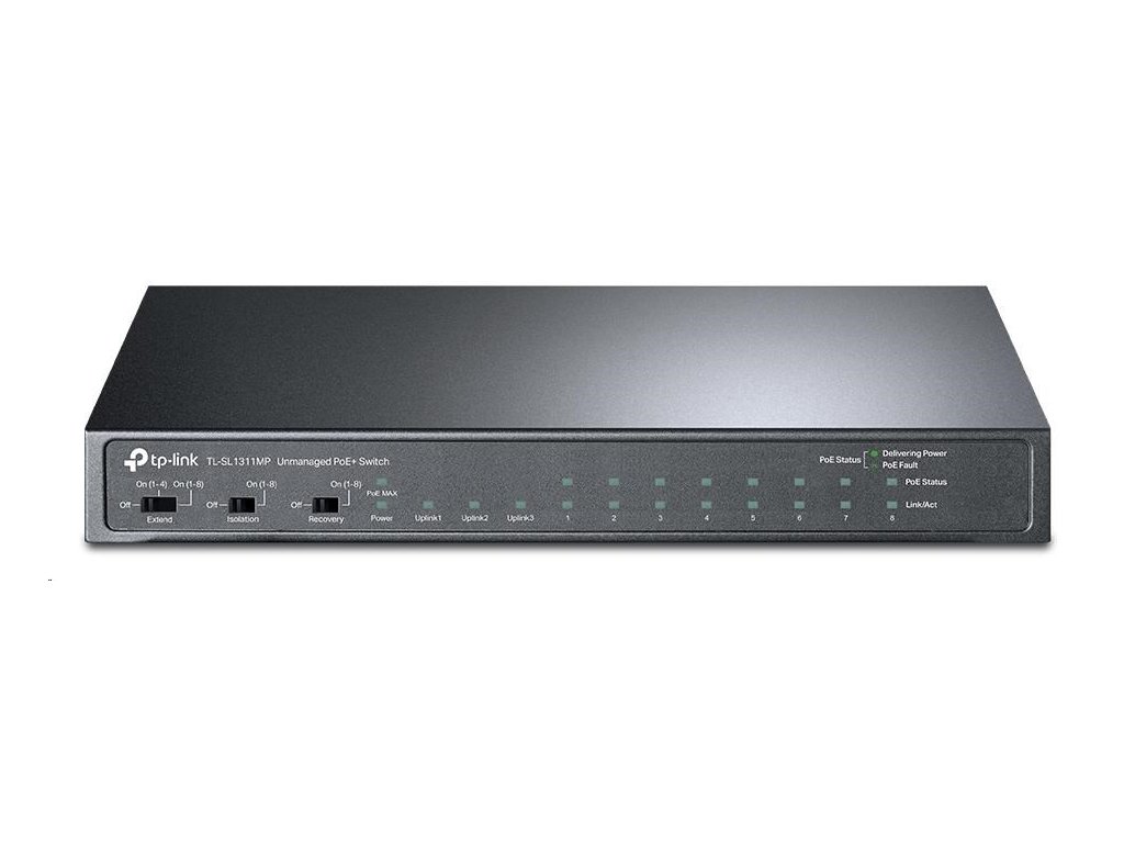 TP-Link CCTV switch TL-SL1311MP (8x100Mb/s, 2xGbE uplink, 1xSFP, 8xPoE+, 124W, fanless)