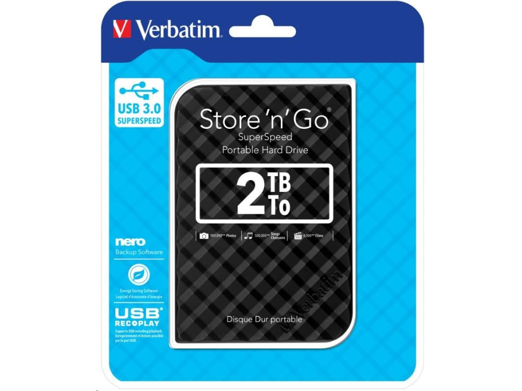 VERBATIM HDD 2.5" 2TB Store 'n' Go Portable Hard Drive USB 3.0, Black GEN II