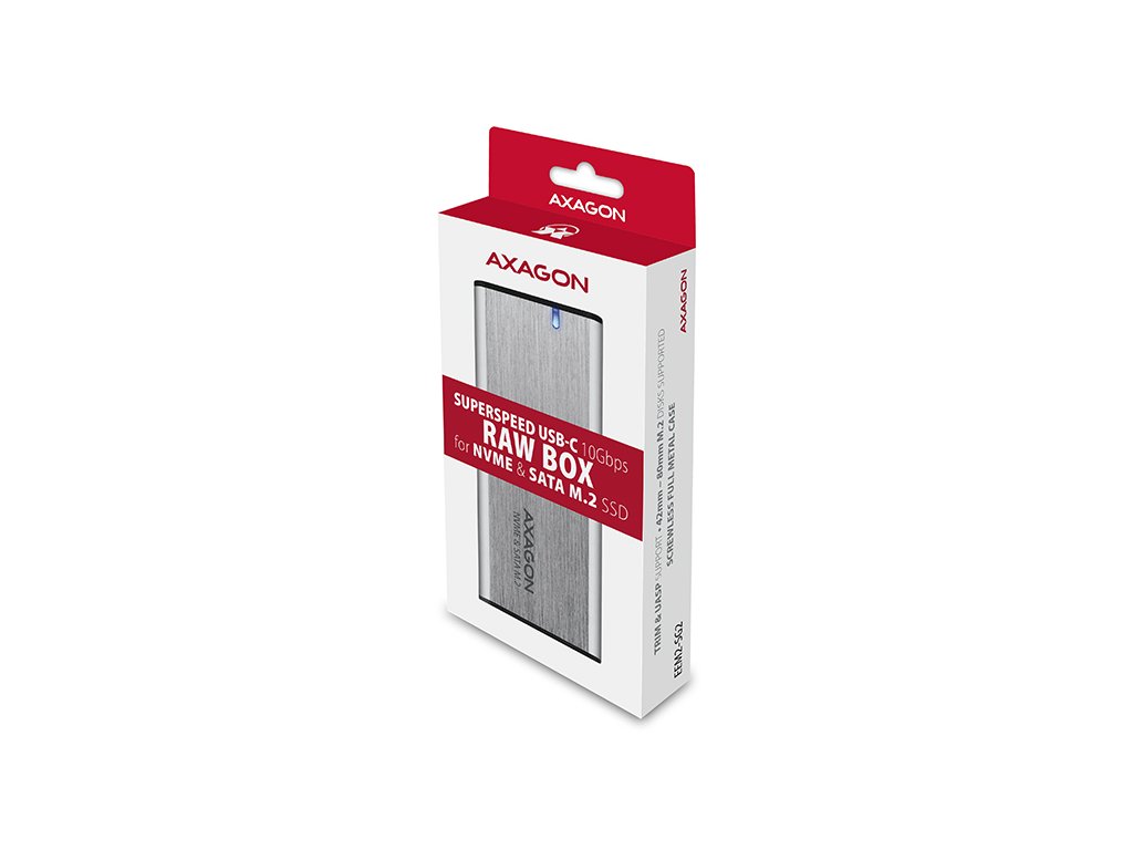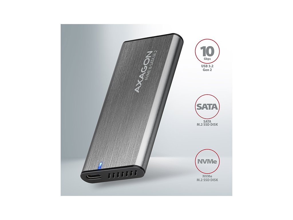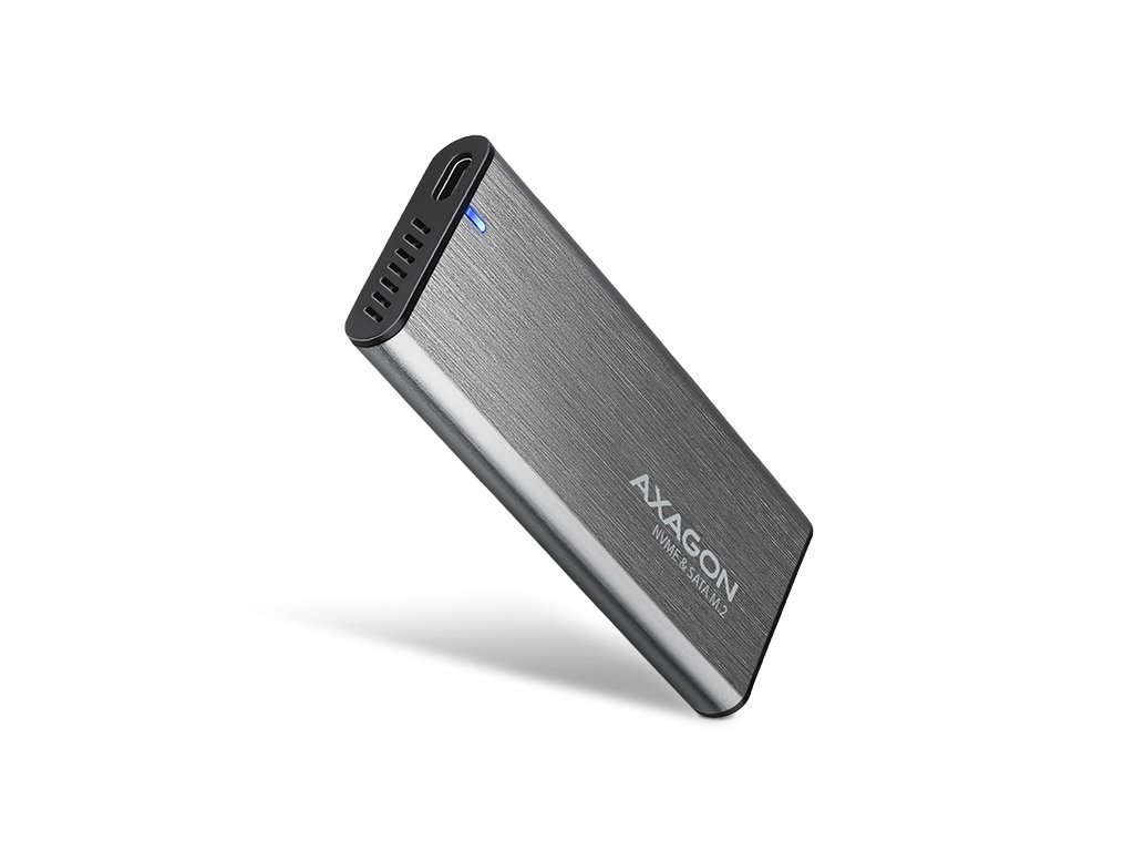 AXAGON EEM2-SG2, USB-C 3.2 Gen 2 - M.2 NVMe & SATA SSD kovový RAW box, bezšroubkový, stříbrný