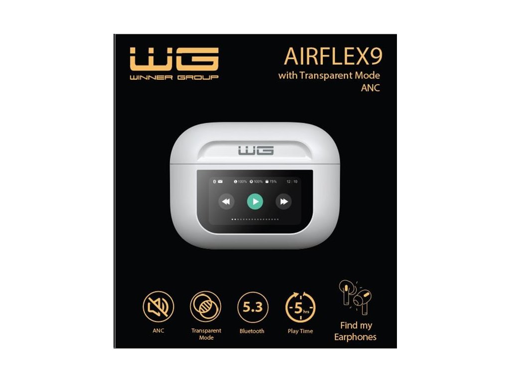 WG - Bluetooth sluchátka WG AirFlex 9 s displejem, Avatar, ANC, bílá