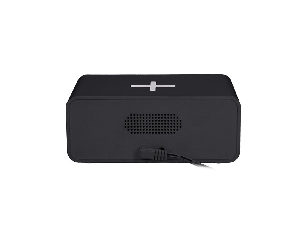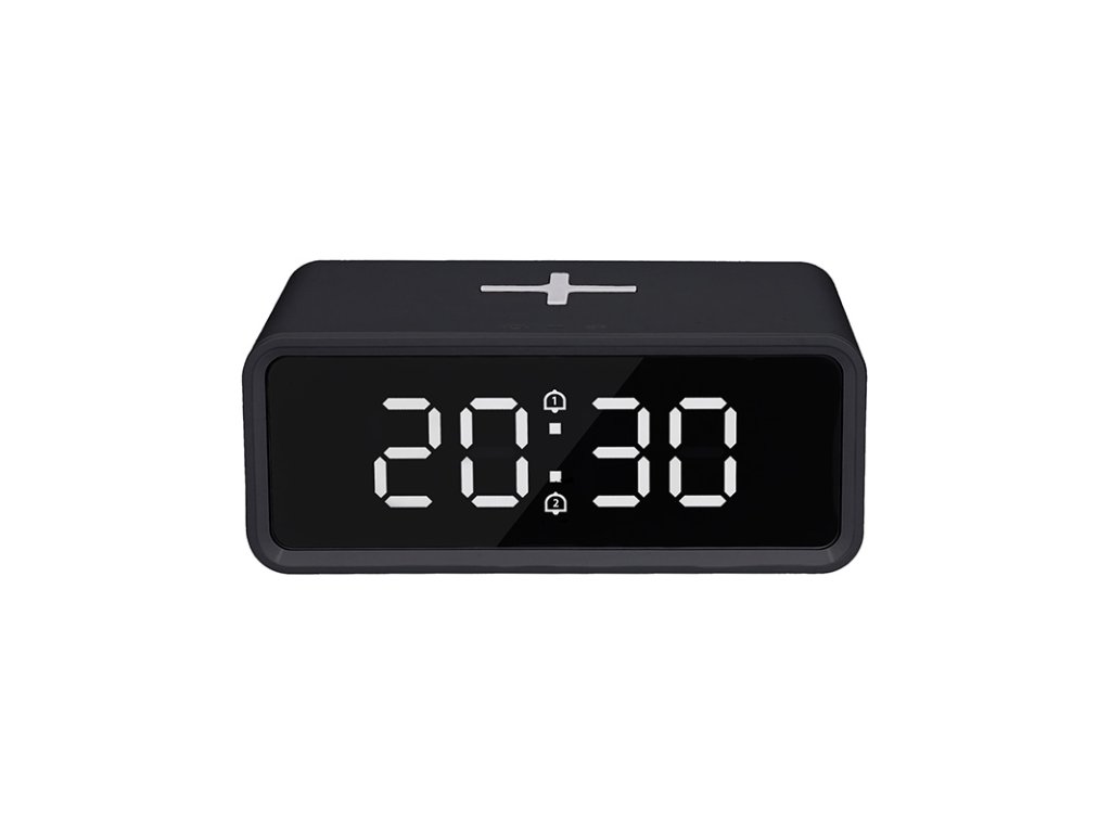 Hodiny s bezdrátovým nabíjením – stylový a praktický doplněk. Tyto moderní hodiny kombinují bezdrátovou nabíječku (Qi, max. 15W), hodiny, teploměr a dvojitý budík s funkcí snooze. Velký LED displej s vysokým rozlišením umožňuje volbu mezi zobrazením pouze času nebo střídáním času a teploty. Nastavitelný jas displeje (3 úrovně + vypnutí) zajišťuje pohodlné používání i v noci. Protiskluzová podložka udrží telefon bezpečně na místě během nabíjení. Napájení přes DC5V-9V/2-3A, záložní baterie CR2032 uchová nastavení při výpadku napájení.