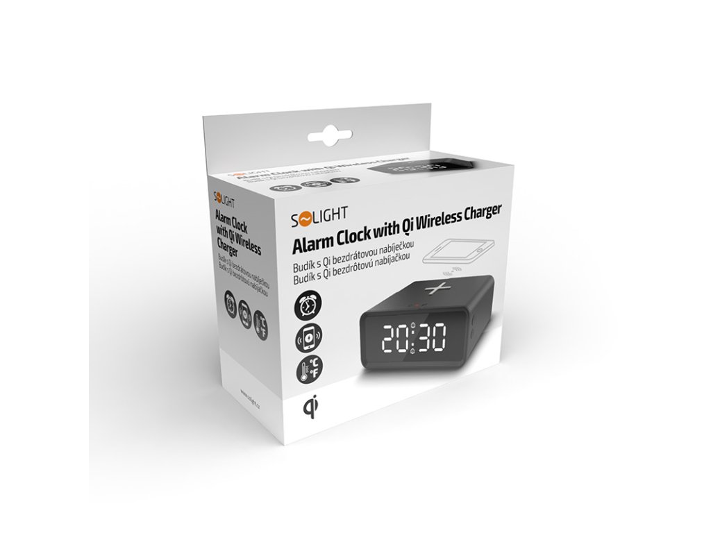 Solight digitální hodiny s Qi bezdrátovou nabíječkou