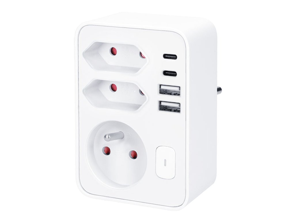 Tři zásuvky (1× 16 A + 2× 2,5 A) zvládnou celkovou zátěž až 3680 W a umožní připojit běžné spotřebiče v obýváku, ložnici nebo pracovně. Zásuvky jsou navíc vybaveny dětskými pojistkami, což zajišťuje bezpečný provoz i v domácnostech s dětmi. Díky dvěma USB-A a dvěma USB-C portům můžete pohodlně nabíjet až čtyři zařízení současně. Power Delivery (PD) technologie výrazně zkracuje dobu, po kterou musí být přístroj v nabíječce. Perfektní pro veškerou USB elektroniku a váš čas.
