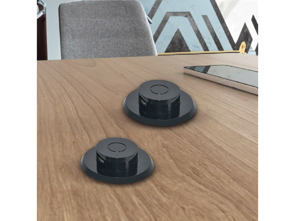Instaluje se do otvoru 50mm v pracovní desce, modul je napájen síťovým adaptérem s délkou kabelu 1,5m. Nabíječka je navržena pro bezpečné vnitřní použití a představuje praktické a elegantní řešení pro každodenní nabíjení bez prodlužovacích přívodů, rozboček, USB adaptérů a kabelového nepořádku.