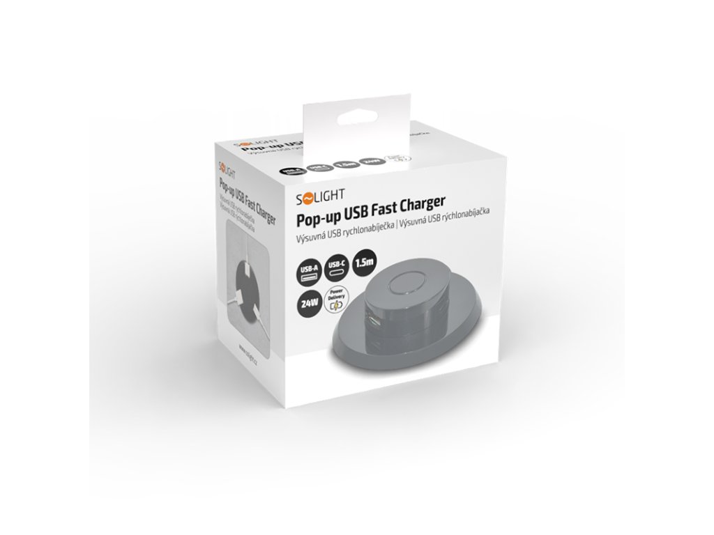 Solight výsuvná nabíječka USB A+C 24W PD, černá