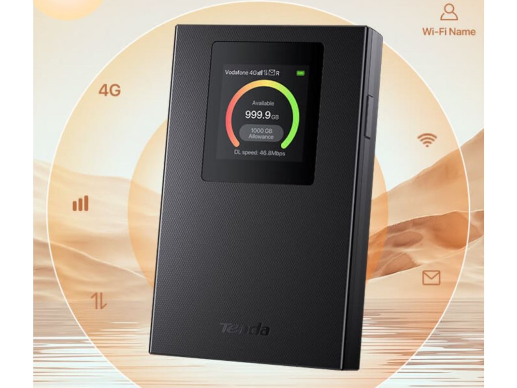 Tenda 4G185v4 4G LTE Mobile AX300 Wi-Fi 6 battery modem router, LCD, WPA3, USB-C
