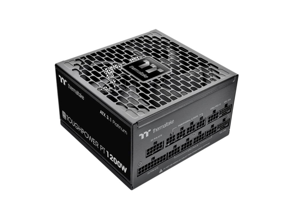 Toughpower PT 1200W Platinum je kompatibilní s ATX 3.1, má certifikaci 80 PLUS Platinum a podporuje nativní PCIe Gen 5.1 (12+4pin) pro napájení nové generace grafických karet. Poskytuje 1200 W nepřetržitého výkonu při 40 °C.