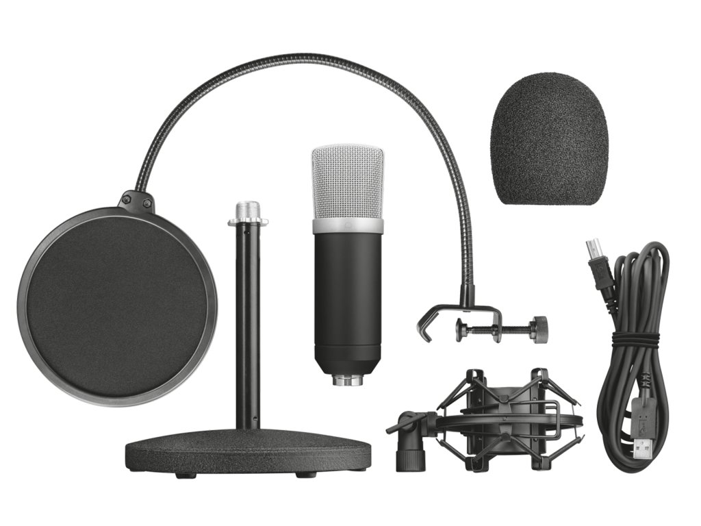 - Včetně těžkého kovového stojánku, vysoce kvalitního antivibračního držáku a velkého dvojitého pop filtru.