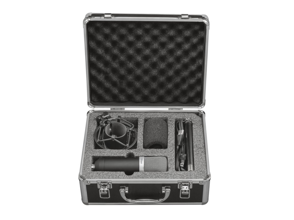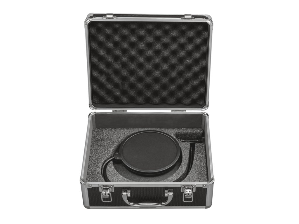 - Mikrofon je dodáván s odolným hliníkovým přepravním pouzdrem pro bezpečné uložení a přepravu