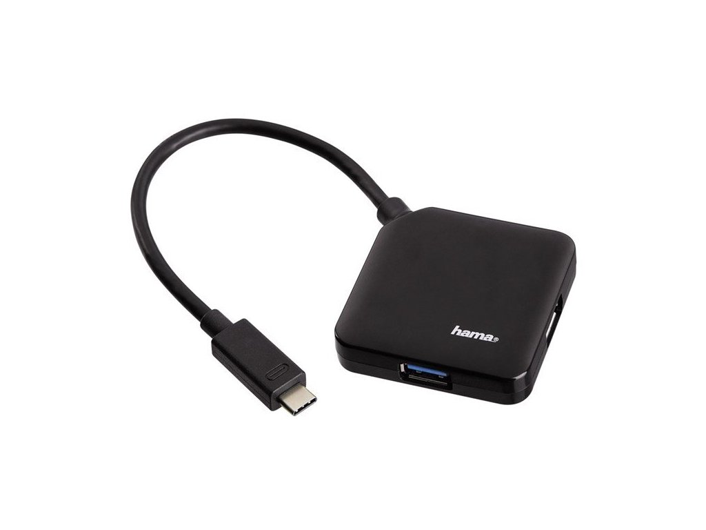 USB hub Hama USB 3.1 typ C 1:4 je rozdělovač, který umožňuje připojení až čtyř USB zařízení s konektorem USB typu C (např. USB flashdisk, čtečka, externí disk).Rozdělovač disponuje rychlostí přenou dat až 5Gbit/s a napájením z USB zásuvky počítače.