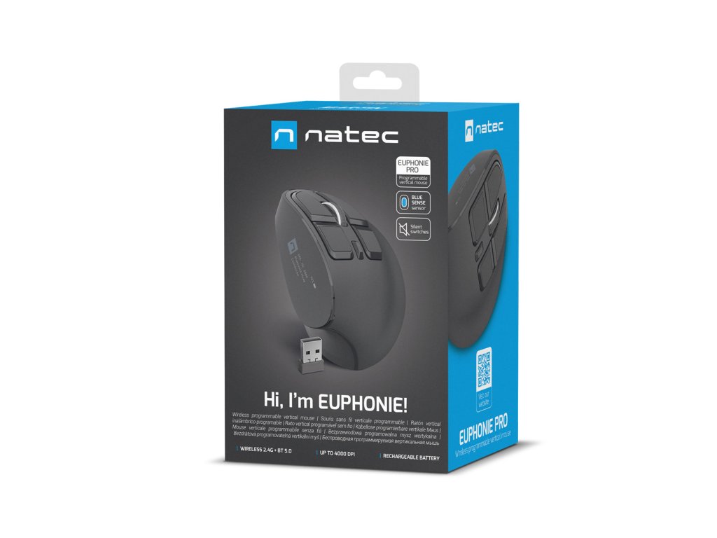 Natec Euphonie Pro je jedna z nejmodernějších vertikálních kancelářských myší, navržená pro pohodlnou práci v ergonomických podmínkách. Myš zaručuje nadstandardní bezdrátové připojení, špičkový senzor, širokou škálu funkcí a tvar, který pomáhá udržovat zdraví zápěstí. Navíc je vybavena tichými spínači, které výrazně zvyšují komfort práce, eliminují hluk a umožňují diskrétnější používání zařízení v kanceláři nebo doma, což je důležité zejména při dlouhodobém používání.