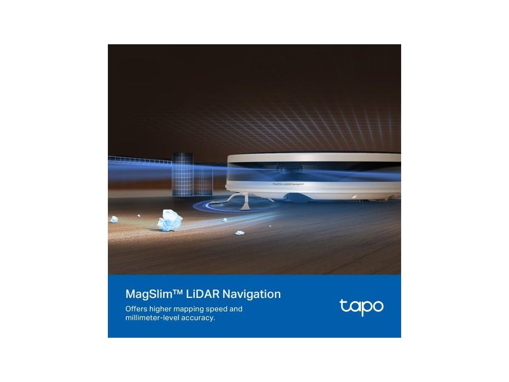 Vysavač TP-Link je vybavený inteligentním navigačním systémem MagSlim™ LiDAR, s jehož pomocí dokáže během několika minut zmapovat celou domácnost. Rozpozná a zafixuje také zdi a různé překážky. Díky 4 lokálně uloženým vícepodlažním mapám rychleji rozpoznává různá podlaží. Naskenovanou mapu můžete uzamknout, abyste vysavači zabránili v případných změnách.