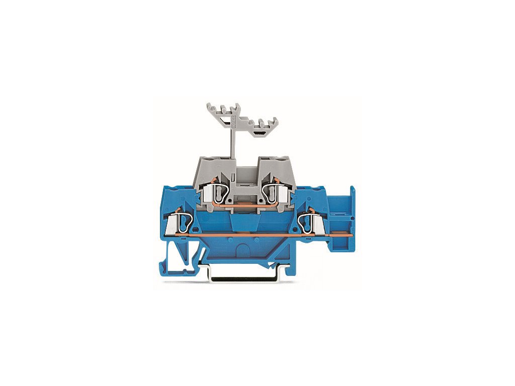 Dvoupatrová svorka; Průchozí/průchozí svorka; S dodatečným příčným můstkovým propojením na prvním patře; Na DIN lištu 35 × 15 a 35 × 7,5; 2,5 mm²; CAGE CLAMP®; 2,50 mm²; Modrá/šedá