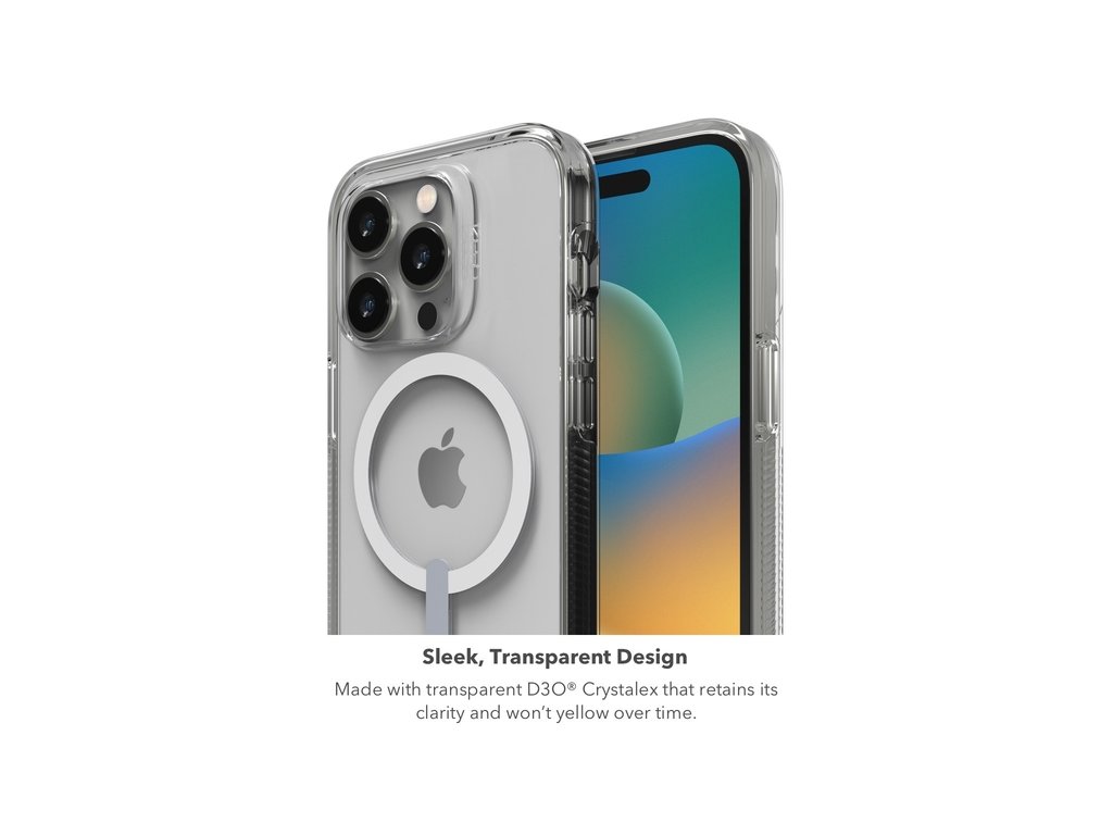Transparentní kryt kompatibilní se systémem MagSafe vyrobený z materiálu D3O®, díky kterému zařízení ochrání při pádech z výšky až 4 metrů. Jeho povrch je obohacen o antimikrobiální vrstvu. Při výrobě krytu byl použit materiál D3O Crystalex, díky tomu deklaruje ochranu zařízení při pádech z výšky až 4 metrů. Materiál je současně vytvořen tak, aby odolával zežloutnutí a přenosu barev a zůstal křišťálově transparentní.