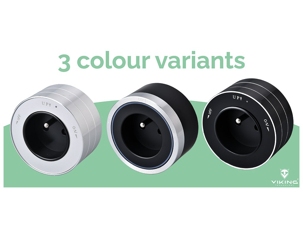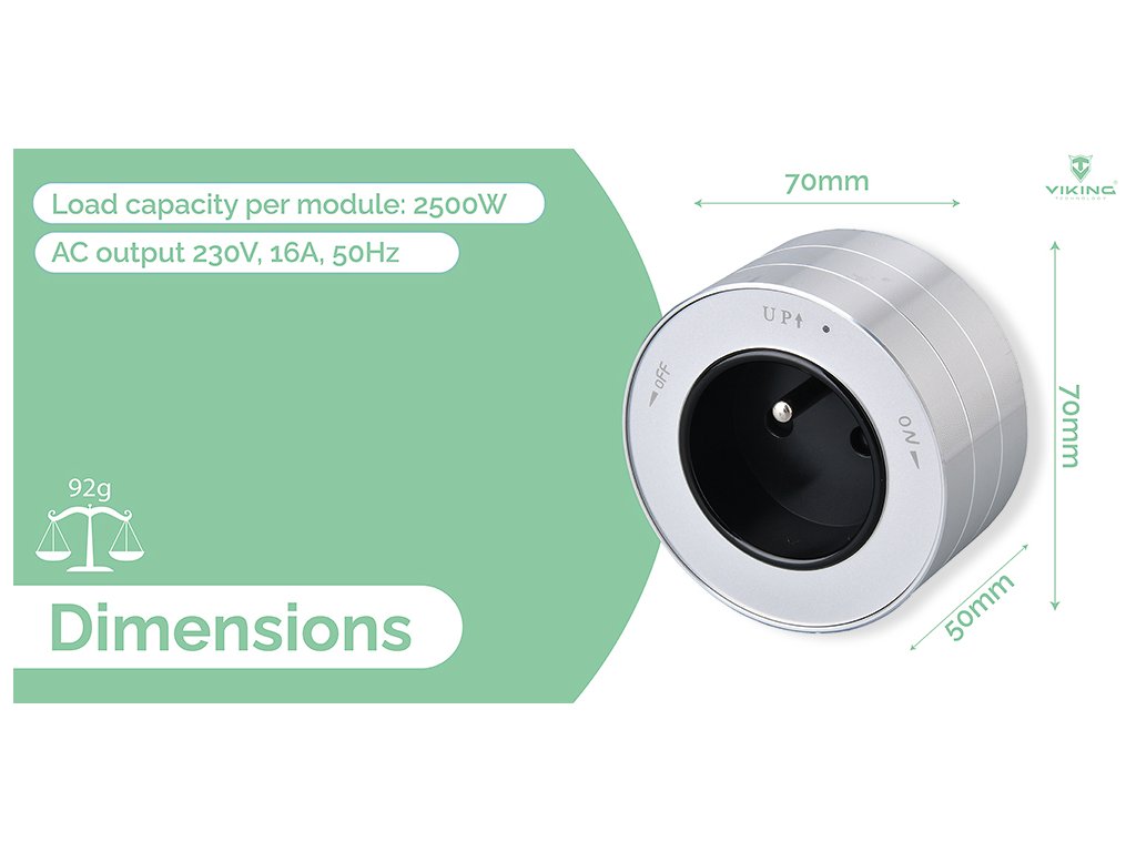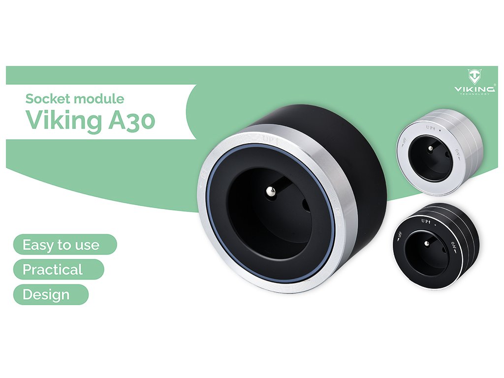 Zásuvkový modul Viking A30 v černé a stříbrné variantě je vybaven LED indikátorem, který po připojení do elektrické sítě svítí modře. Stříbrno-černá varianta obsahuje kruhový LED indikátor, který signalizuje aktivní stav modulu.